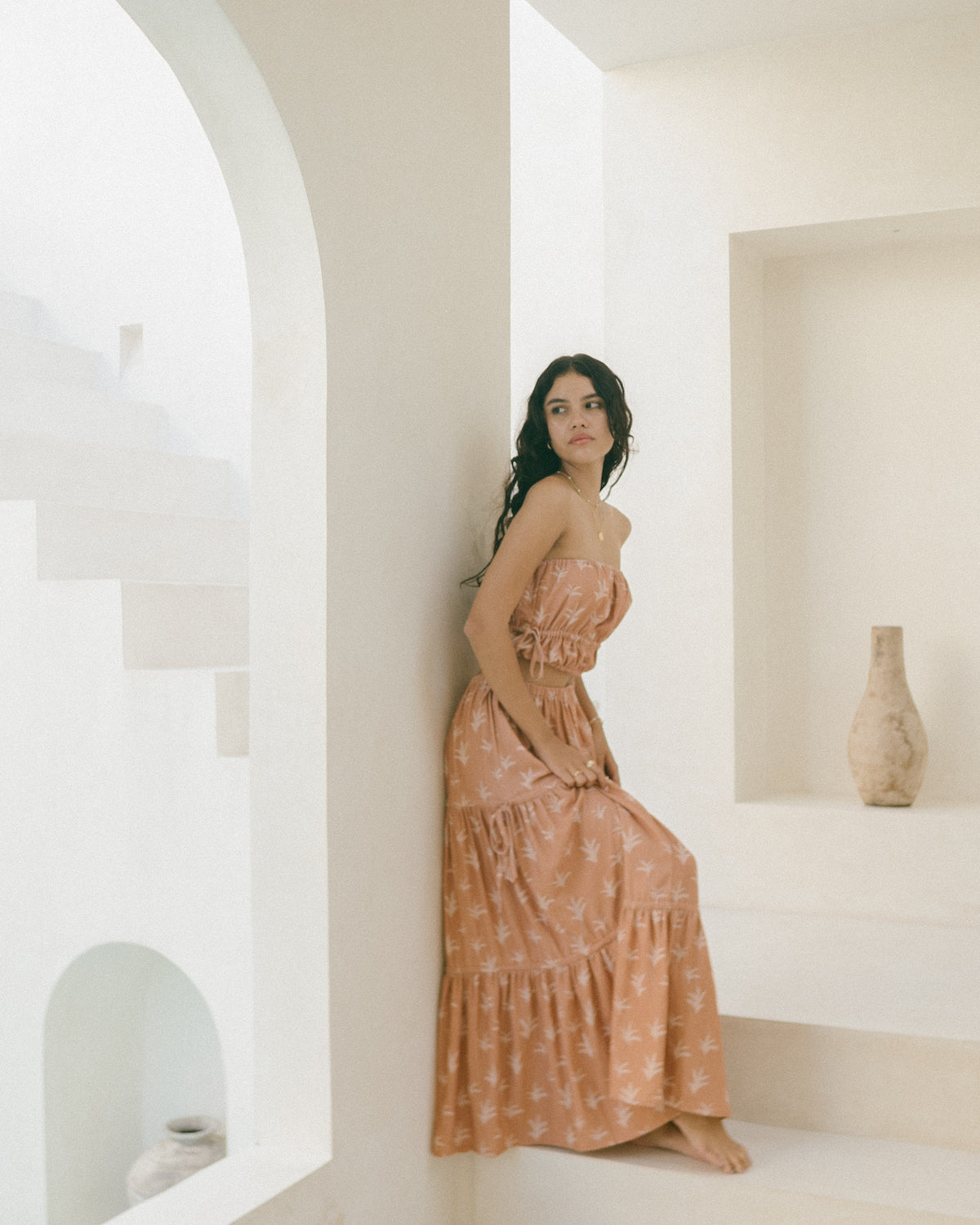 Featuring an elasticated bandeau silhouette with our exclusive palm print and delicate ruched tie-up details, this piece is made for effortless style. Pair it with the matching Aliya Maxi Skirt and nude sandals for a seamless look, or mix it with denim, linen shorts, or skirts—the styling options are endless.
